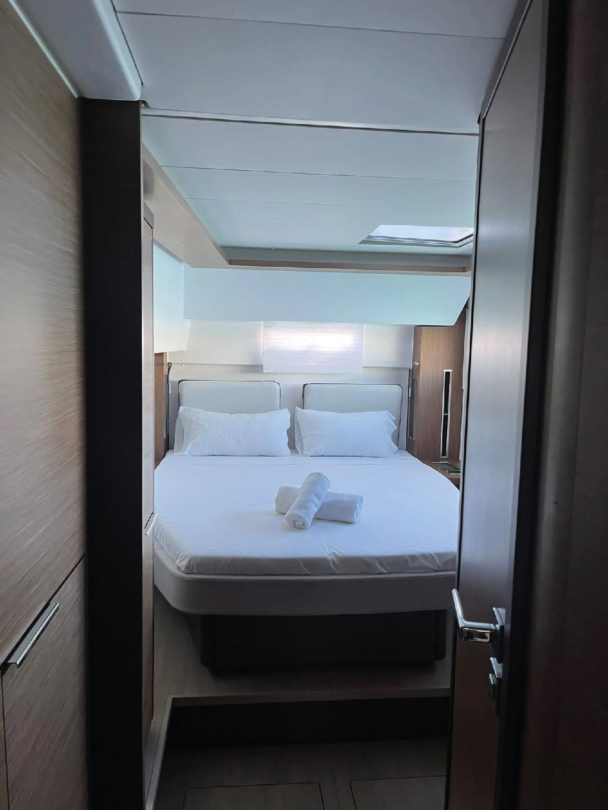 Amenities and Equipment: - Air Conditioning: Ensures comfort in all weather conditions. - High-Performance Sound System: For an enhanced audio experience. - Stern Mattresses: Provide additional relaxation space. - Spacious Cockpit Table: Accommodates up to 10 people. - Barbecue: Located in the cockpit area for outdoor cooking. - Bow Solarium: Dedicated sunbathing area at the front. - Stand-Up Paddle Boards: Two boards available for water activities. - Dinghy with Motor: For easy shore access. - Autopilot: Assists in navigation. - Bimini Top: Offers shade in the cockpit. - Bow Thruster: Enhances manoeuvrability. - Snorkeling Equipment: Available for underwater exploration. - Wi-Fi: Provides internet connectivity onboard.